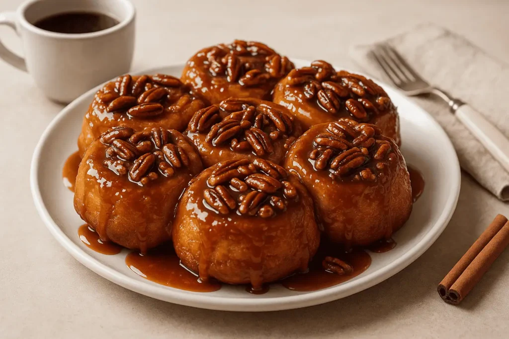 Soft rolls baked in a caramel-pecan sauce that turns irresistibly sticky when flipped out of the pan. Breakfast, brunch, or dessert — they never last long.