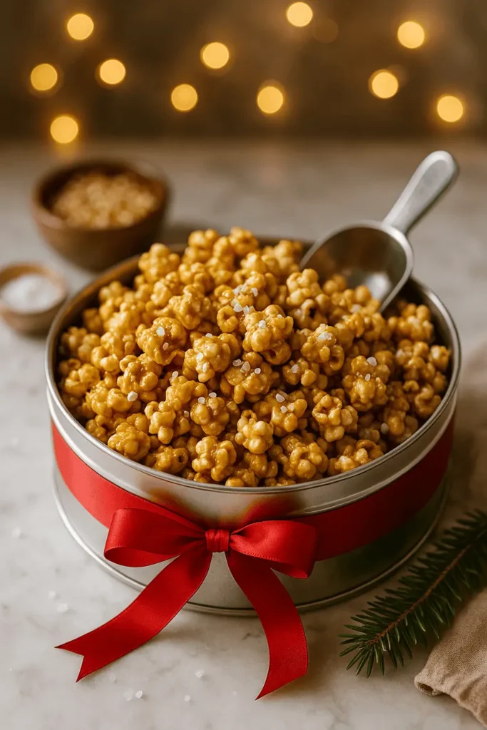 Light, crunchy popcorn coated in buttery caramel. A nostalgic snack that doubles as an easy homemade gift during the holidays.