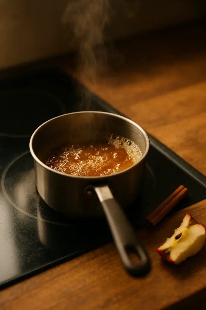 1. Reduce the cider: Simmer 1 1/2 cups apple cider in a small saucepan over medium heat until reduced to 1/2 cup (about 15-20 minutes). Let cool.