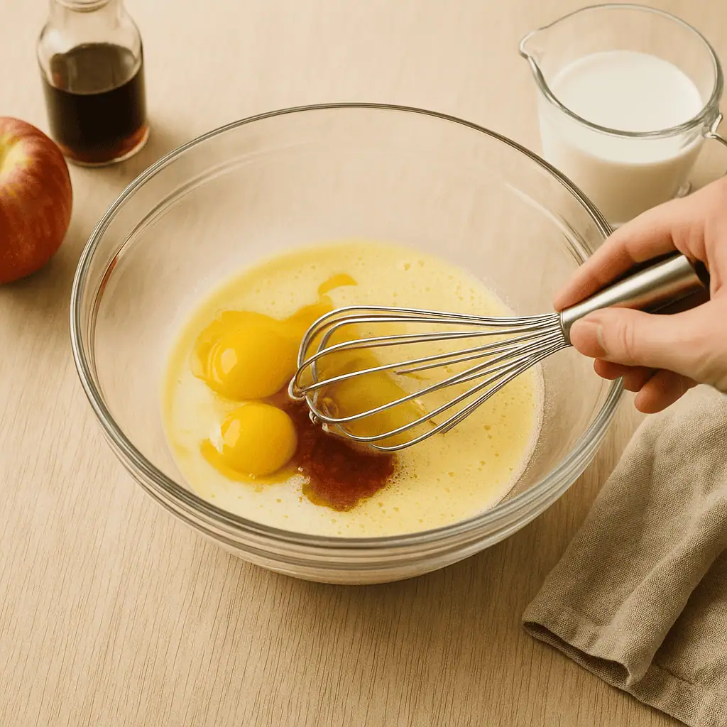 3. Whisk wet ingredients: In another bowl, whisk eggs, oil, milk, and vanilla.
