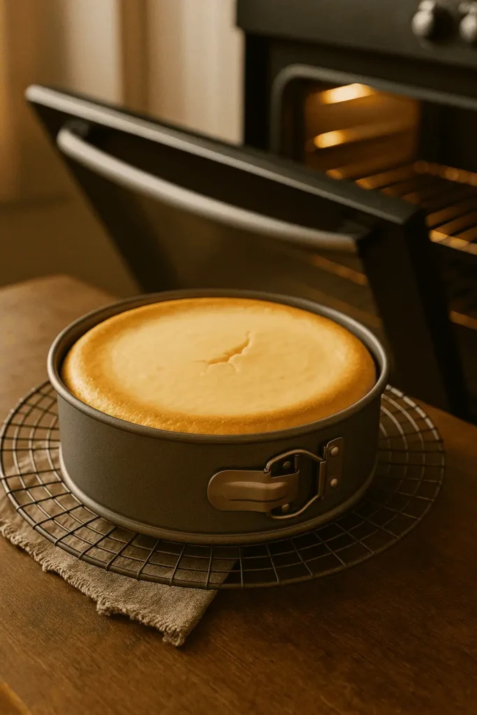 - 6️⃣ Bake for 50–60 minutes, until center is almost set but still slightly jiggly. Turn off oven, crack door, and let cheesecake cool inside for 1 hour.