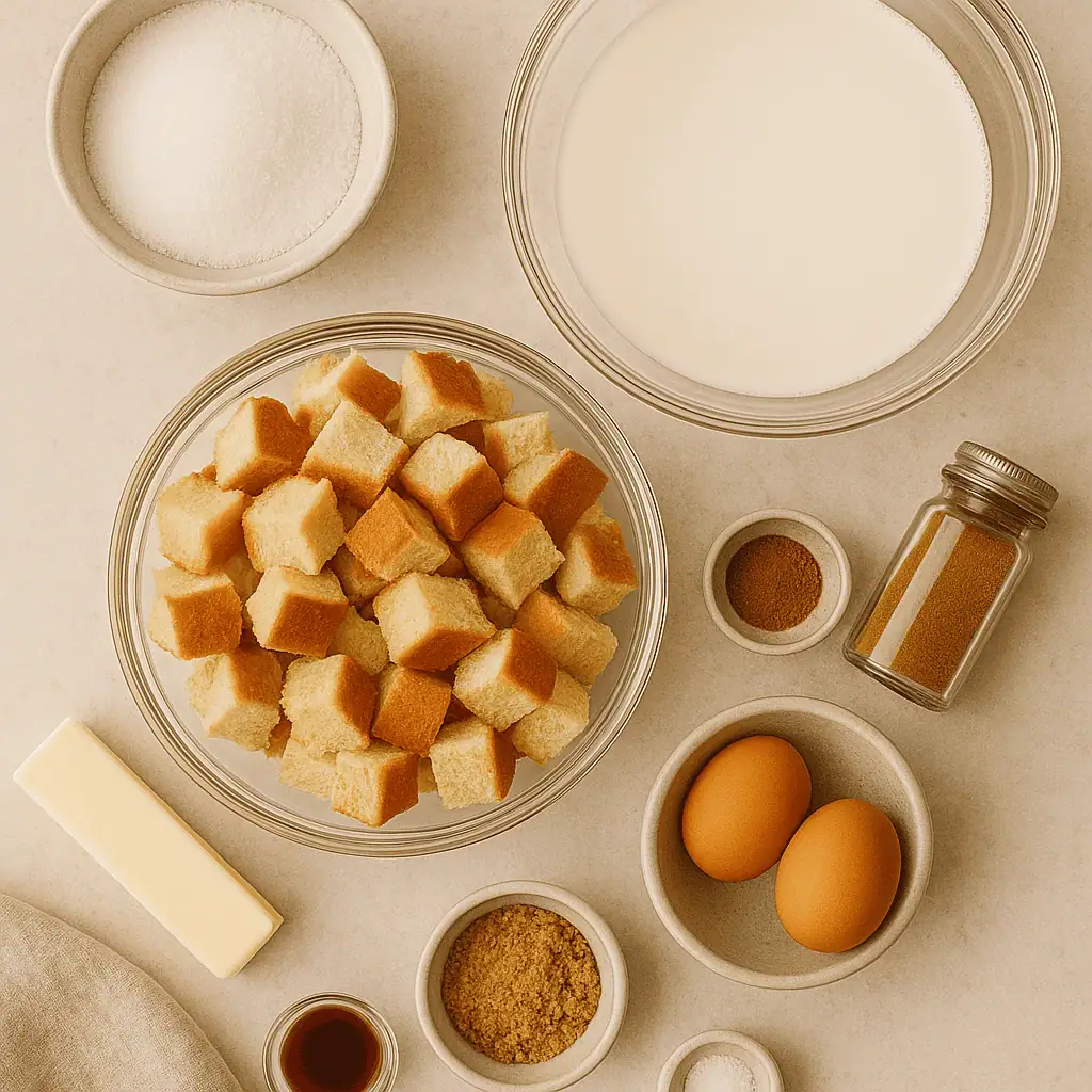 - 6 cups cubed day-old bread (brioche, challah, or French bread work best)