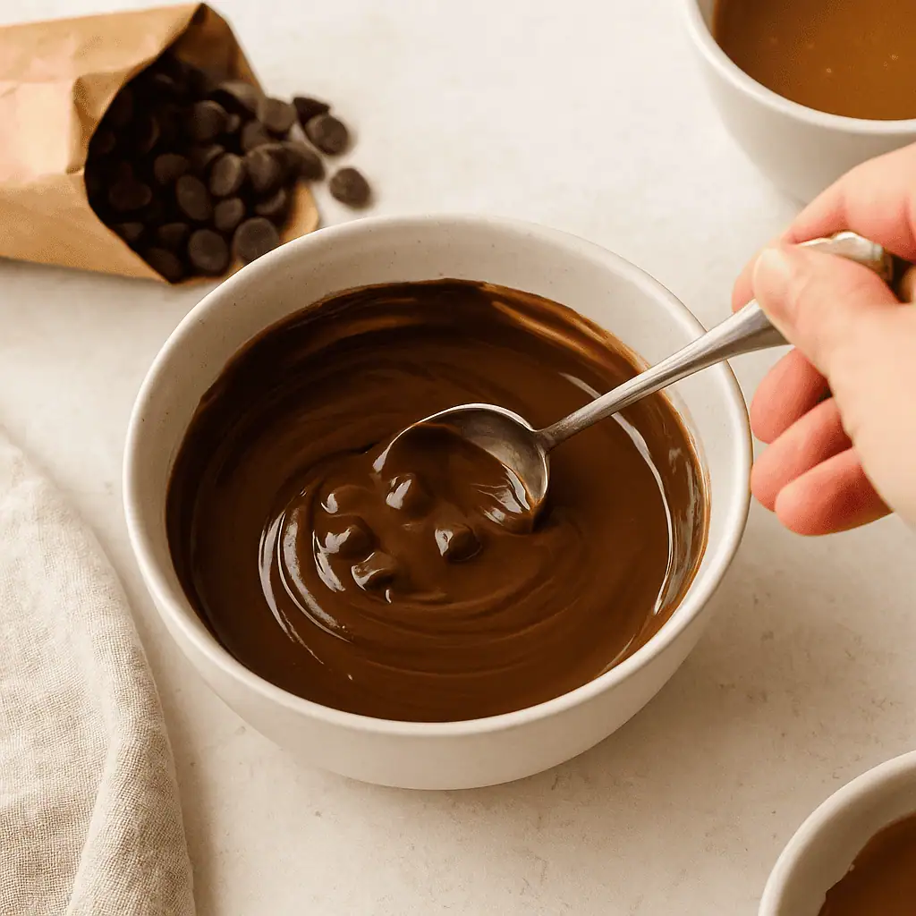 4. Melt the chocolate: In a clean bowl, melt chocolate chips in 20–30 second bursts, stirring until smooth.