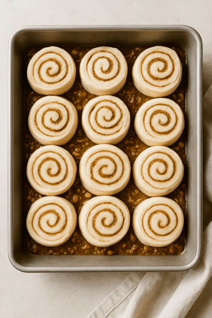 4. Place rolls cut-side down on top of the caramel in the pan. Cover and rise 30β45 minutes.