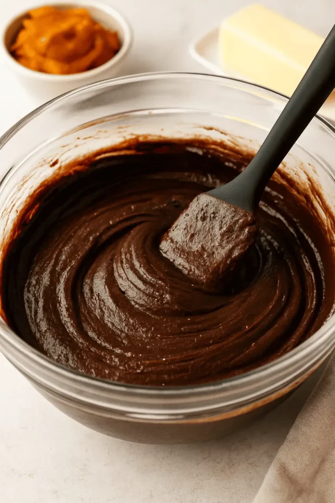 - Make the brownie batter: In a large bowl, whisk together melted butter, granulated sugar, eggs, and vanilla until glossy. Stir in cocoa powder, flour, and salt until just combined.
