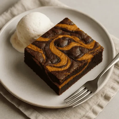 Fudgy, rich chocolate brownie meets velvety spiced pumpkin in the most beautiful swirl of fall flavors. Theyโre cozy, dramatic, and totally party-ready. Perfect for everything from Halloween potlucks to “just because it’s Tuesday and I’m wearing fuzzy socks” kind of days.