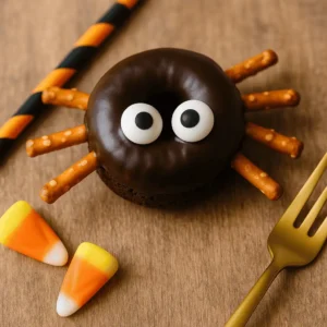 These Mini Spider Donuts are the ultimate no-bake Halloween dessert—adorable, spooky, and ready in minutes. Chocolate mini donuts become creepy-cute spiders with pretzel stick legs and candy eyes. Perfect for Halloween parties, school treats, or edible holiday décor. 🕷🍩