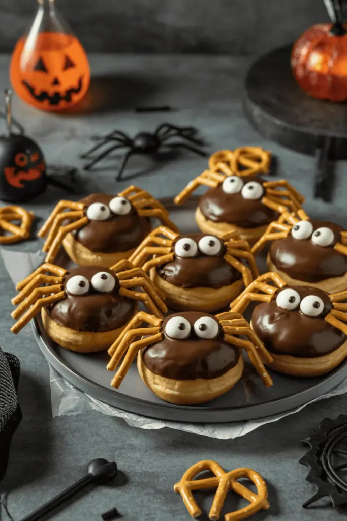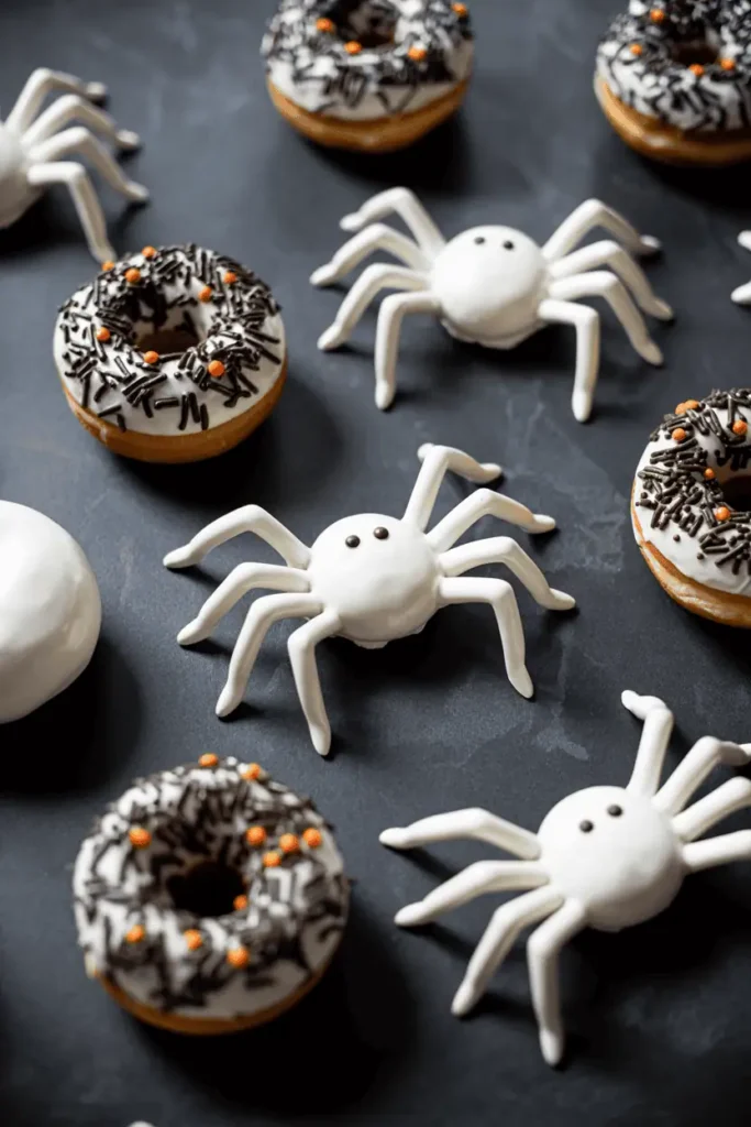 - Sprinkle Spiders: Roll donuts in orange and black sprinkles before adding legs.