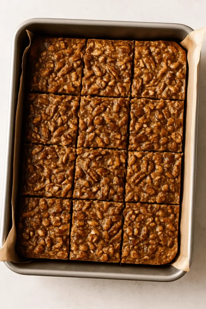 - ✔️ For the cleanest slices, chill the bars completely before cutting — and use a sharp knife wiped between cuts!