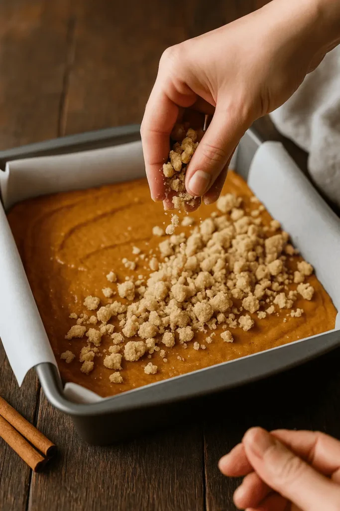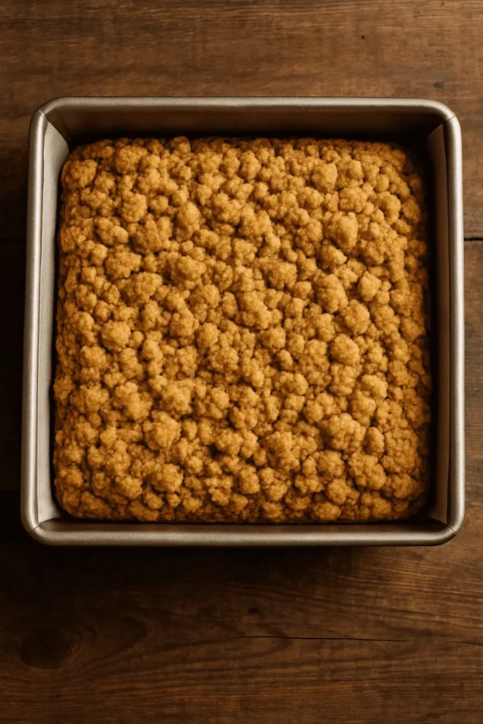 - Spread batter evenly into prepared pan. Sprinkle crumb topping generously over the top.