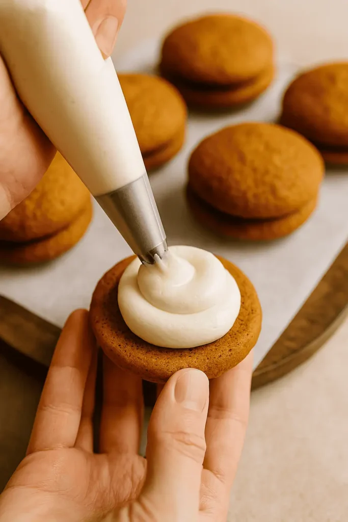 8. Sandwich cooled cookies with a generous dollop of filling. Chill briefly for best texture.