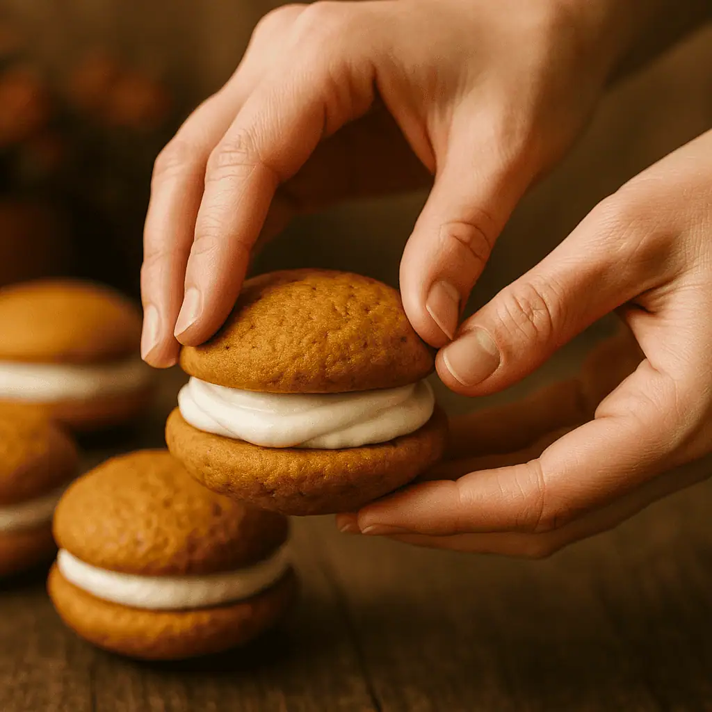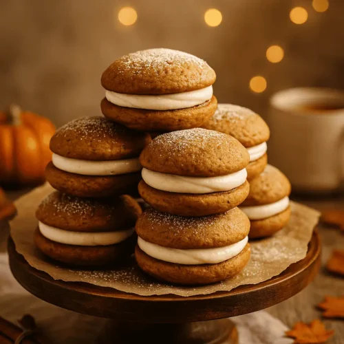 If fall had a mascot dessert, this would be it. These Pumpkin Whoopie Pies are soft, pillowy pumpkin cookies sandwiched with a rich cream cheese filling that tastes like cheesecake frosting. Theyβre moist, spiced, and perfect for everything from bake sales to Friendsgiving tables. π