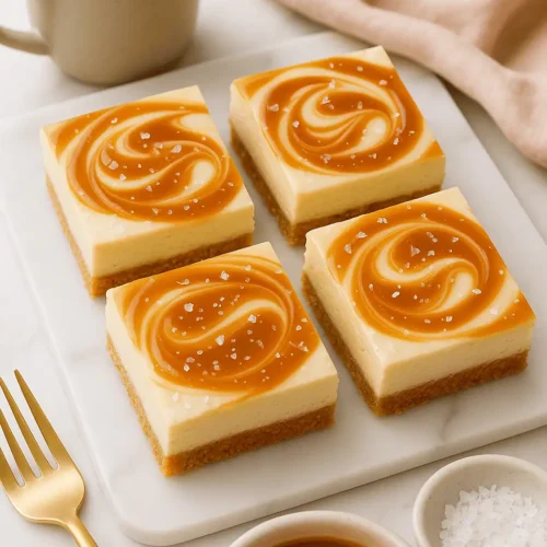 You know that dessert that disappears before you can even grab a second slice? These Salted Caramel Cheesecake Bars are it. Creamy, dreamy vanilla cheesecake meets a buttery graham cracker crust, all topped with swirls of golden salted caramel that make your kitchen smell like a fancy bakery. Perfect for holiday trays, potlucks, or just a cozy Wednesday night with your favorite blanket and Netflix lineup.