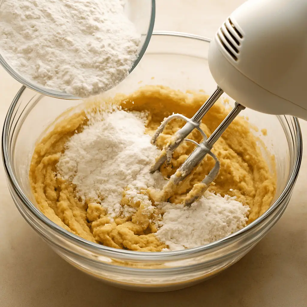 3. In a separate bowl, whisk flour, cornstarch, baking soda, and salt.